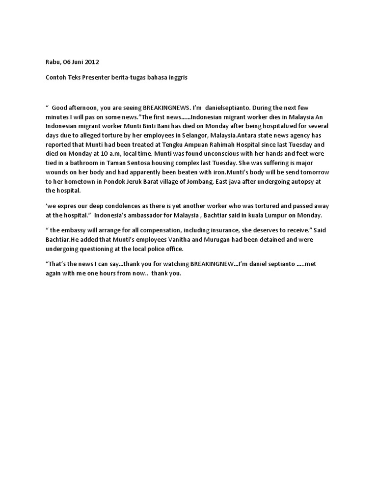 Contoh Teks Presenter Berita Dalam Bahasa Inggris Sumber : terkaitteks.blogspot.com